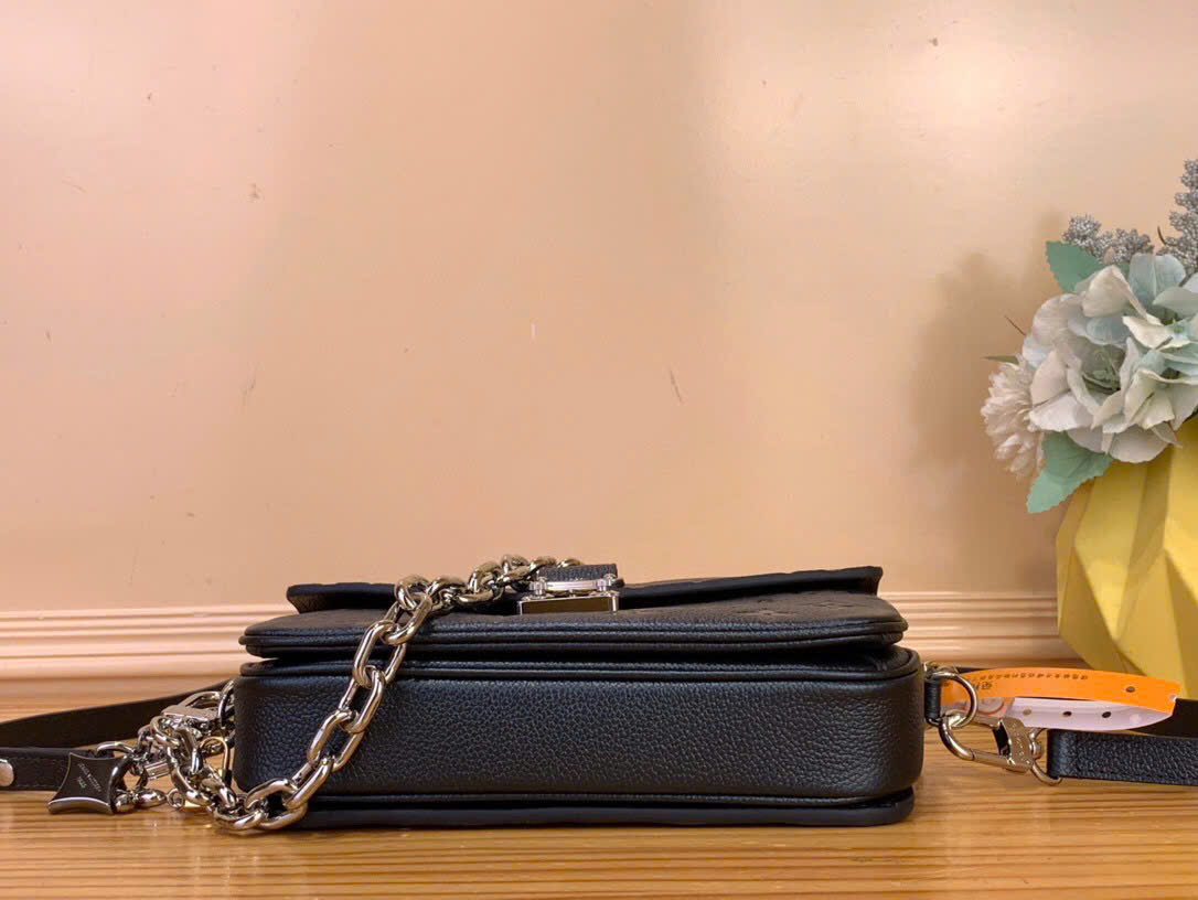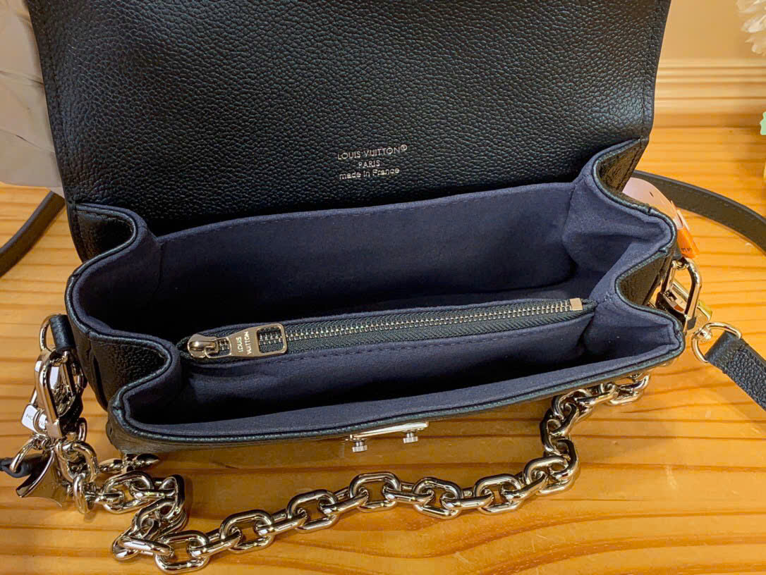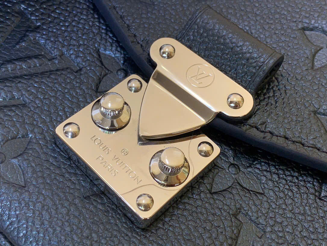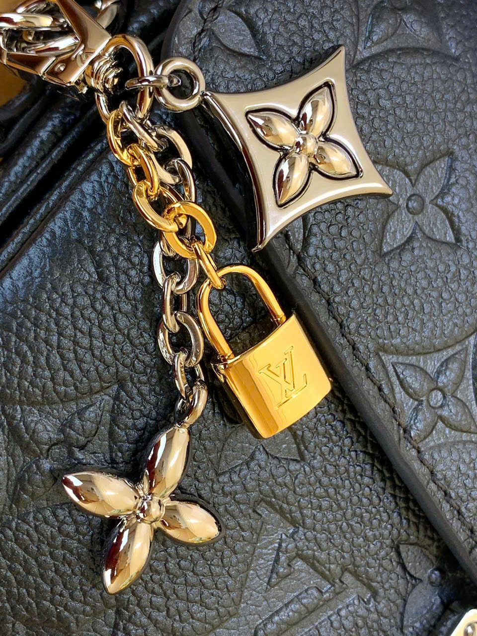 - Chất liệu: Da Monogram Empreinte Ys, trang trí sơn ngọc trai,khóa S, dây xích tháo rời và charm kim loại ba màu