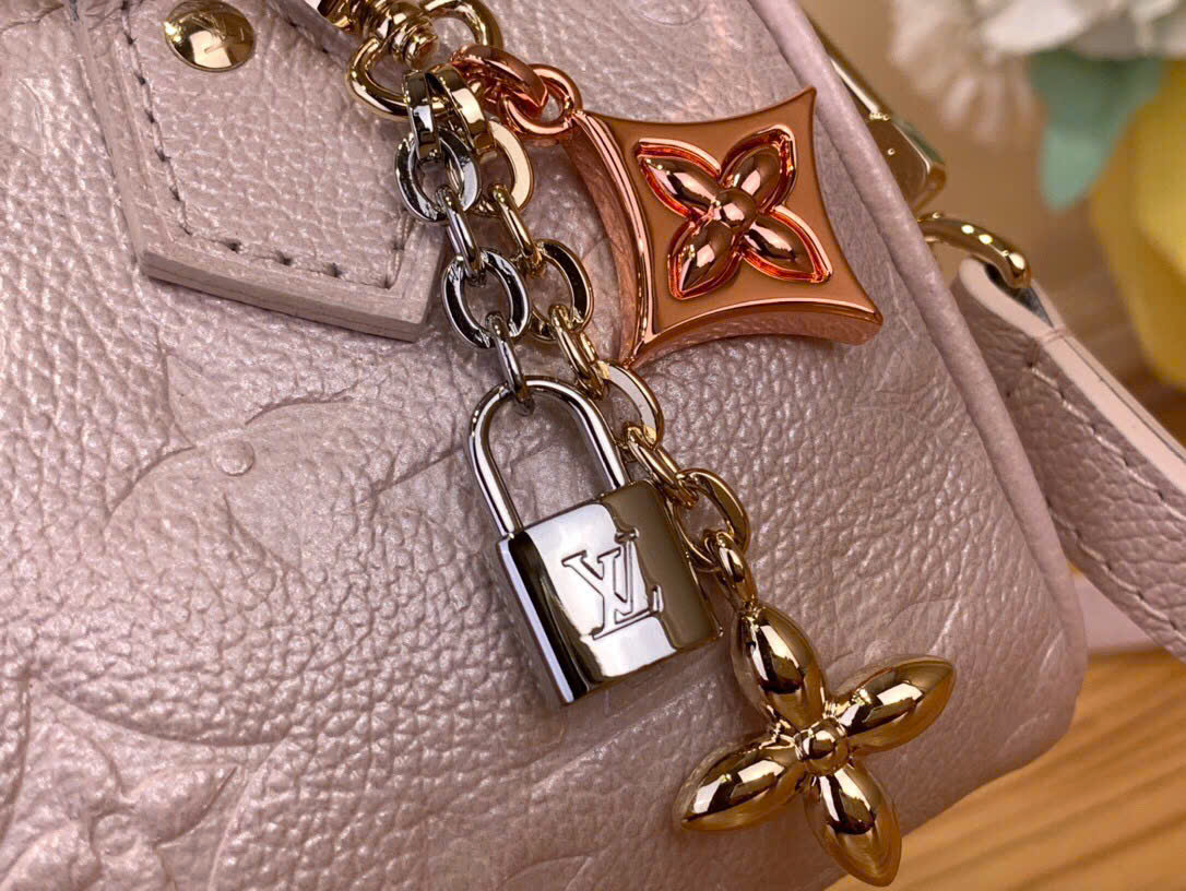 • Có móc trang trí tháo rời, kết hợp các chi tiết đặc trưng của Louis Vuitton như khóa treo và hoa Monogram.