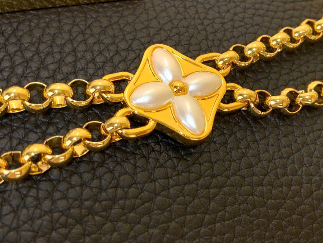 • Chi tiết chuỗi và hoa Monogram vỏ sò tinh xảo, tăng điểm nhấn thời thượng.