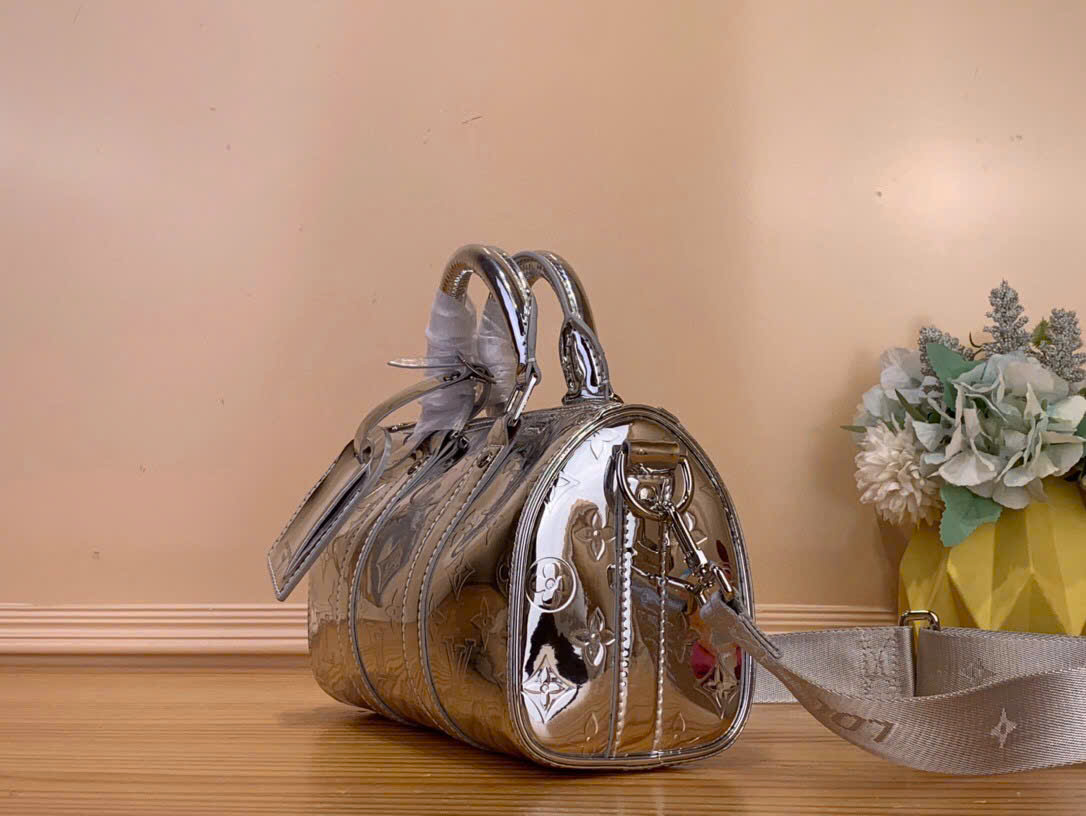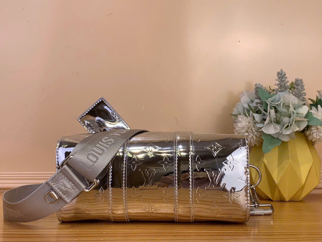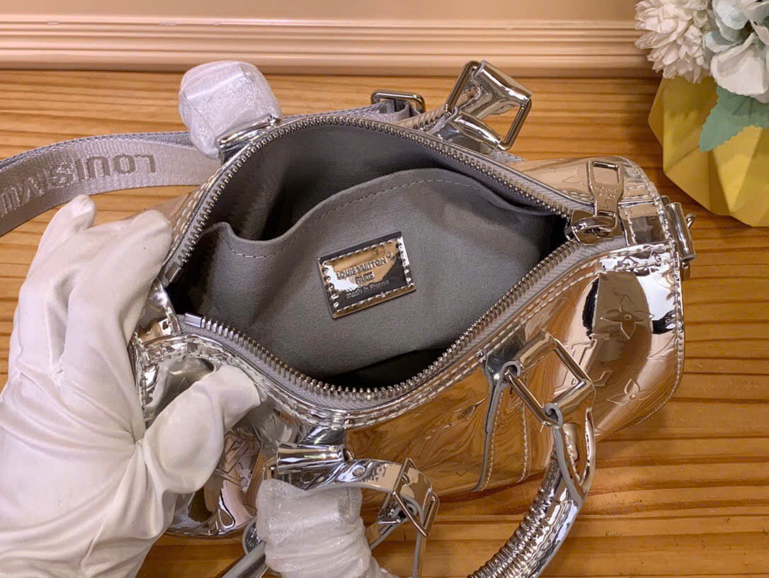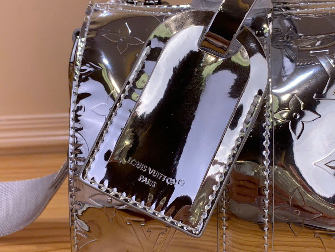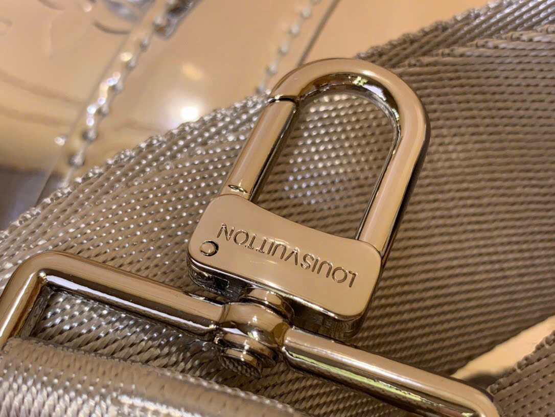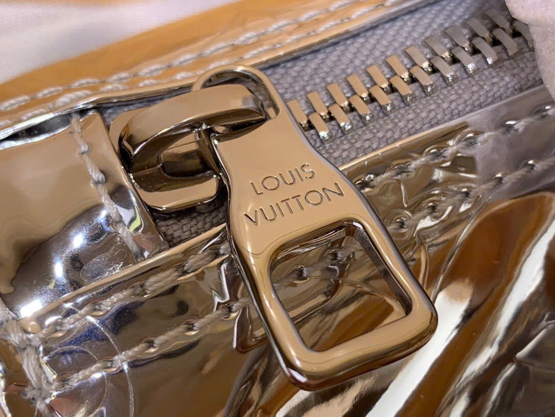 • Thân túi làm từ canvas Monogram Miroir 508 phủ lớp coating với hiệu ứng gương và Monogram dập nổi tạo cảm giác kim loại.