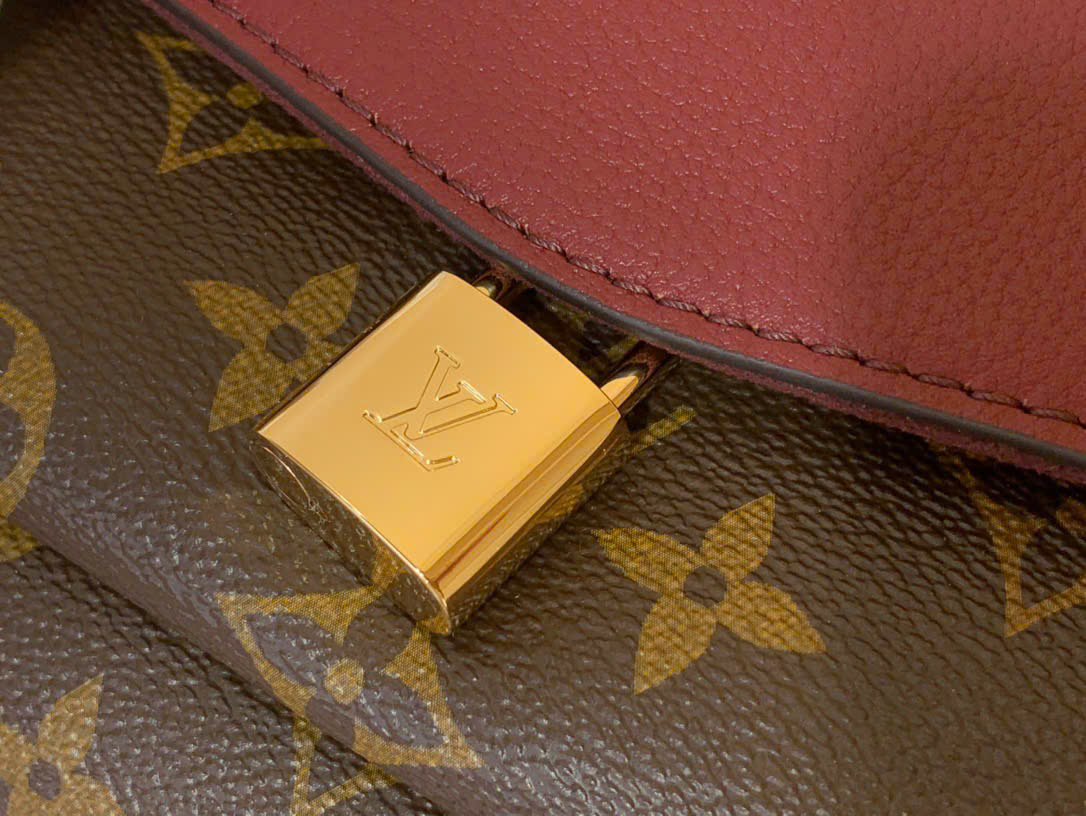 • Điểm nhấn bằng khóa vàng, tôn vinh di sản hành lý Louis Vuitton.
