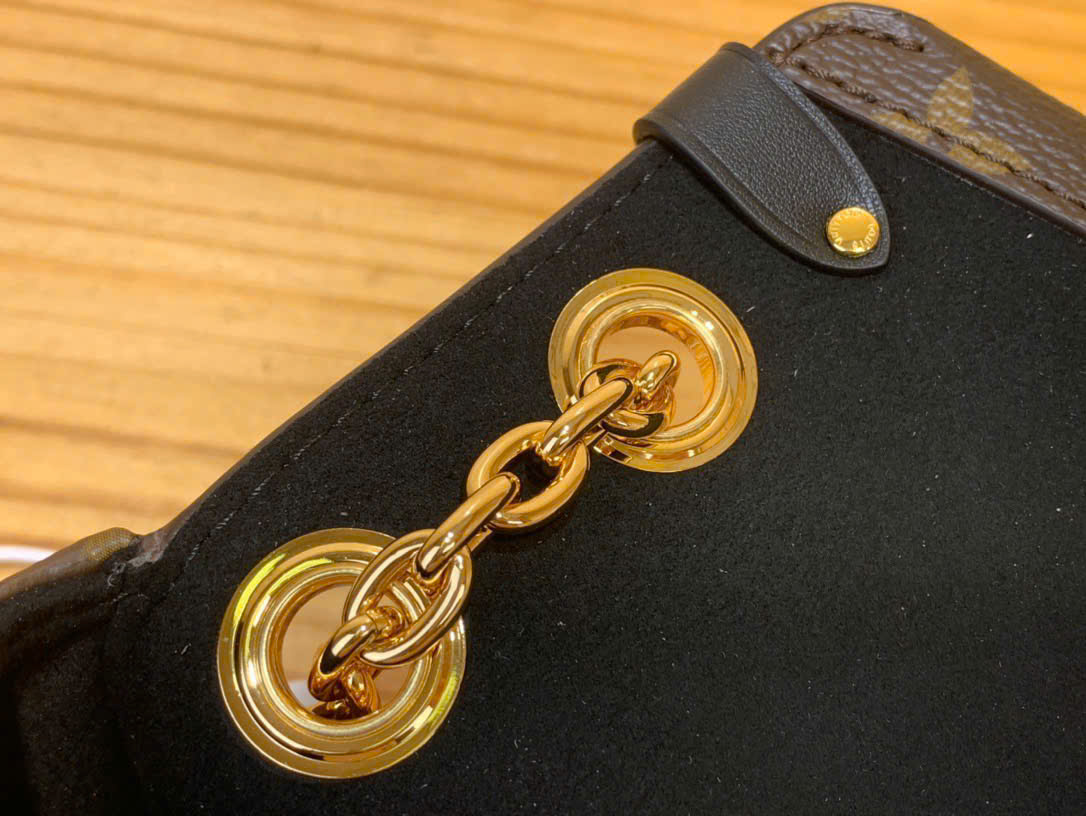 - Chất liệu: Chất liệu canvas Monogram đặc trưng kết hợp khóa da, khóa S-lock, góc kim loại và đinh tán nổi bật, thể hiện di sản chế tác hành lý của thương hiệu.