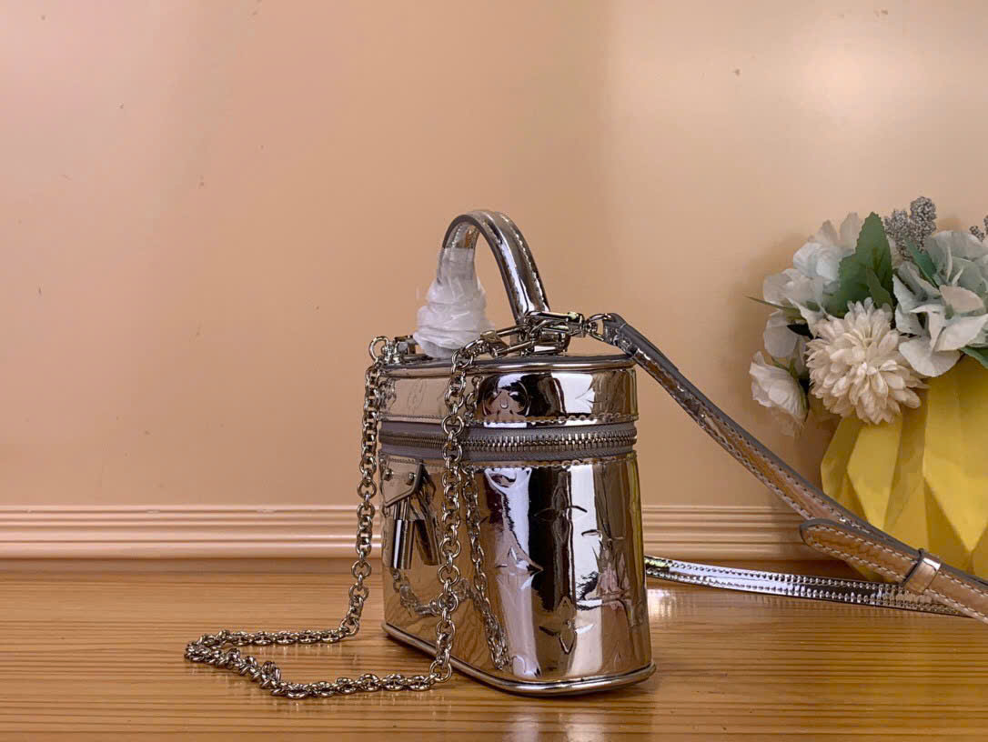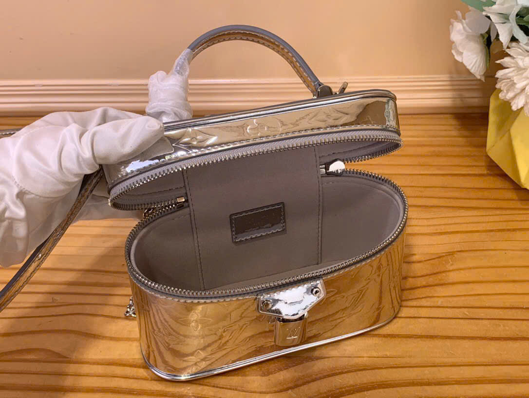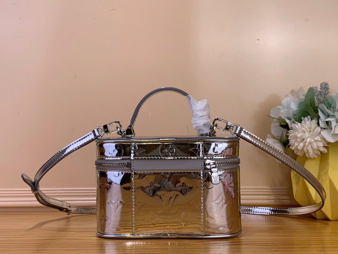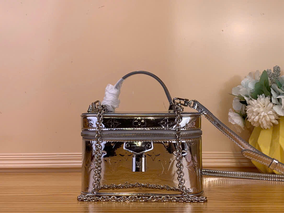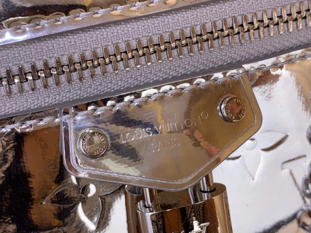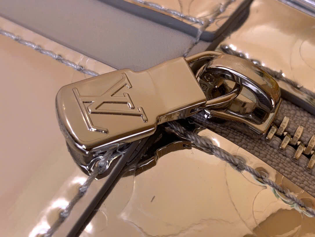 • Thân túi làm từ canvas Monogram Miroir ST, lấy cảm hứng từ các rương trang điểm truyền thống của LV.