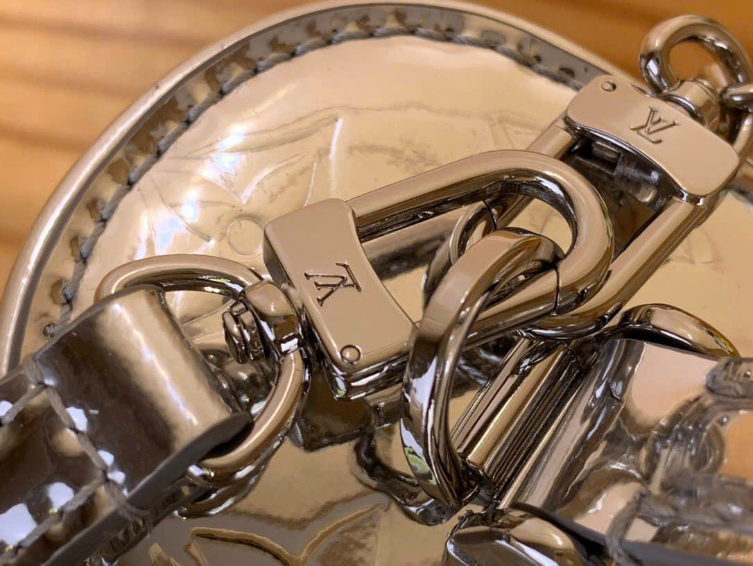 • Khóa LV khắc chữ tinh xảo, kết hợp dây đeo và dây xích tháo rời, tạo điểm nhấn sang trọng.