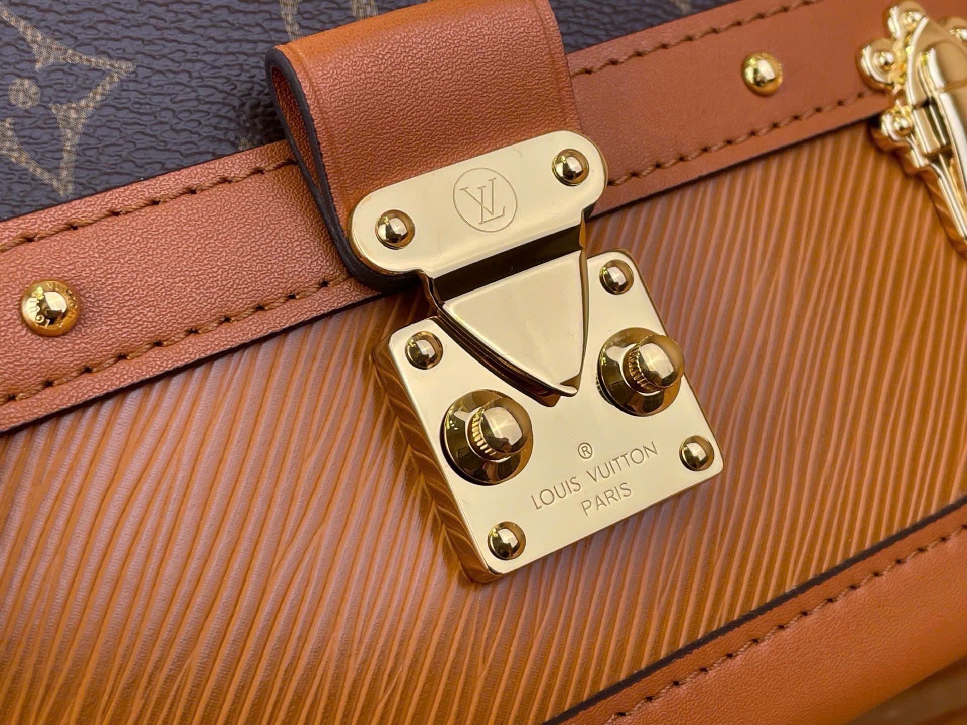 - Chất liệu da cao cấp phối Monogram, mềm mại nhưng vẫn giữ form đẹp.