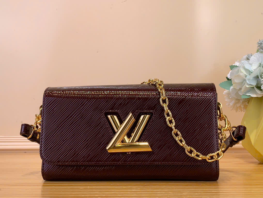 Túi xách LV Twist West – Màu đỏ rượu vân sóng (da bóng gương)