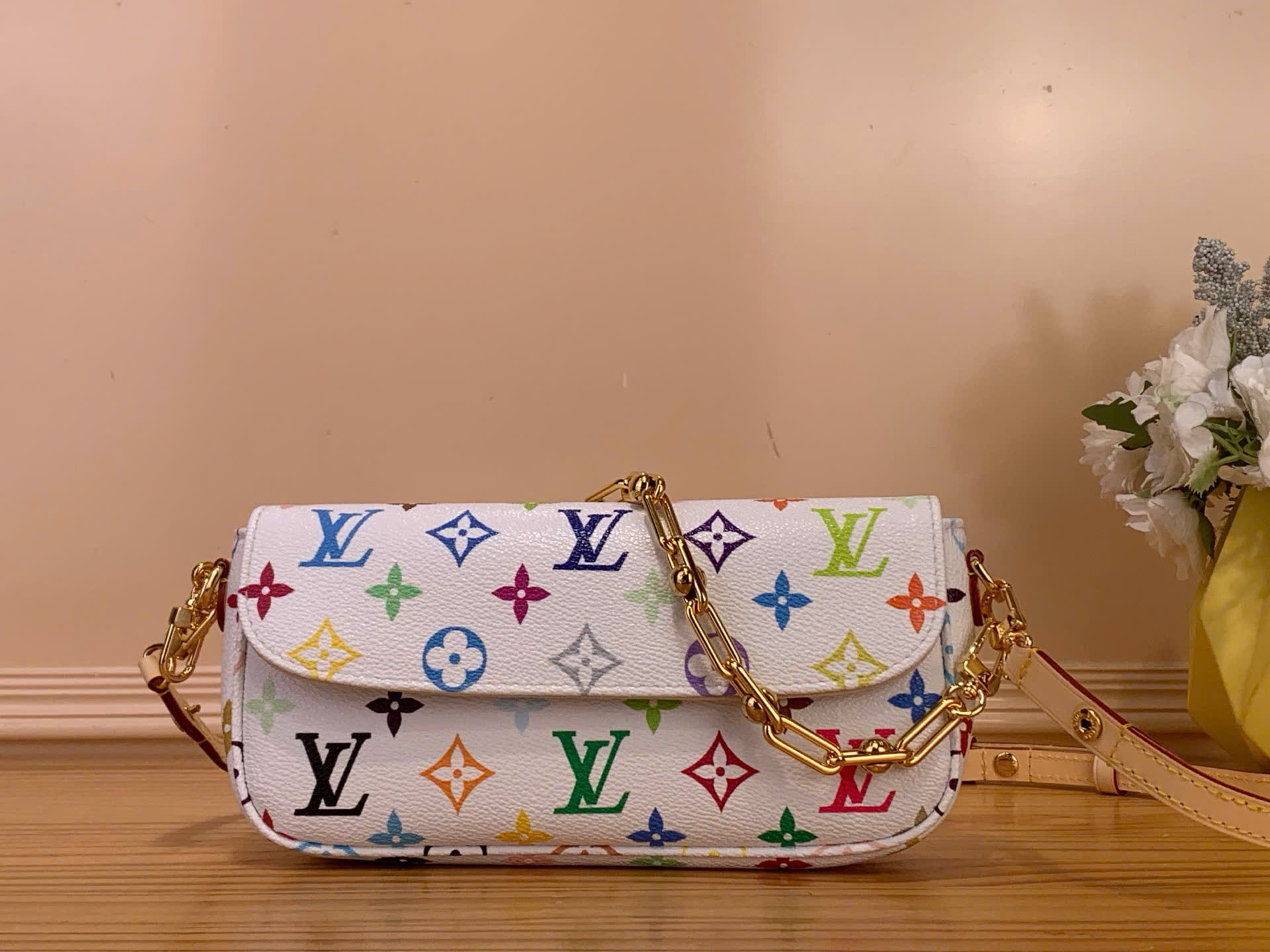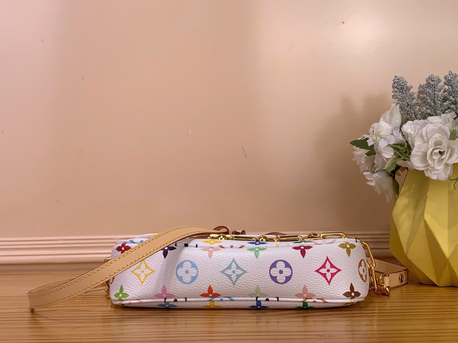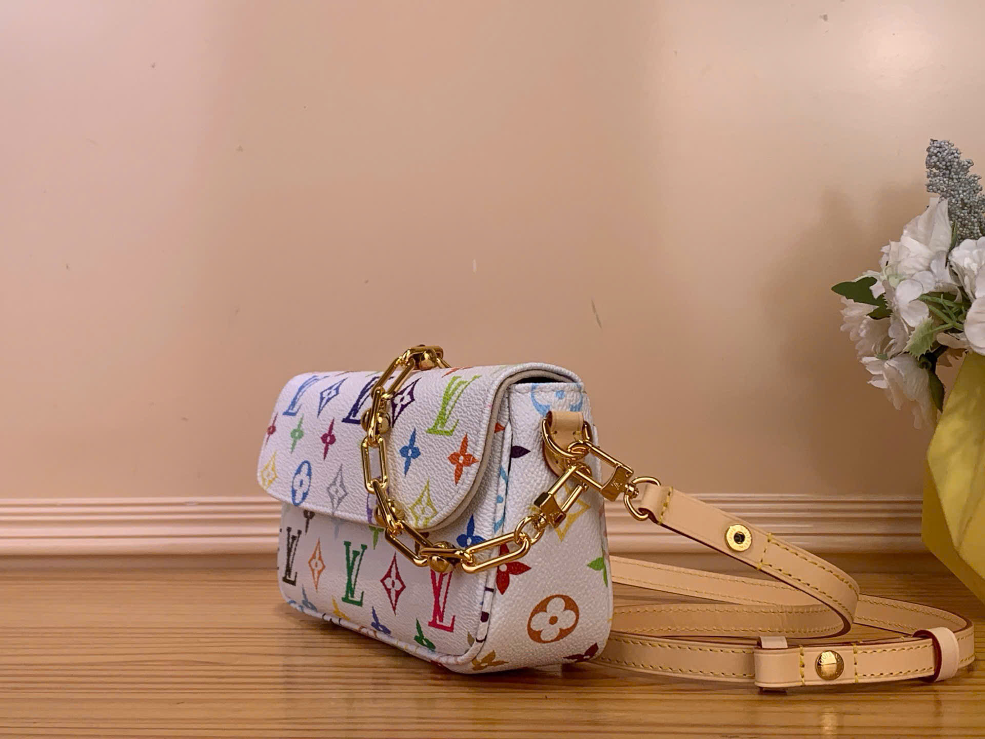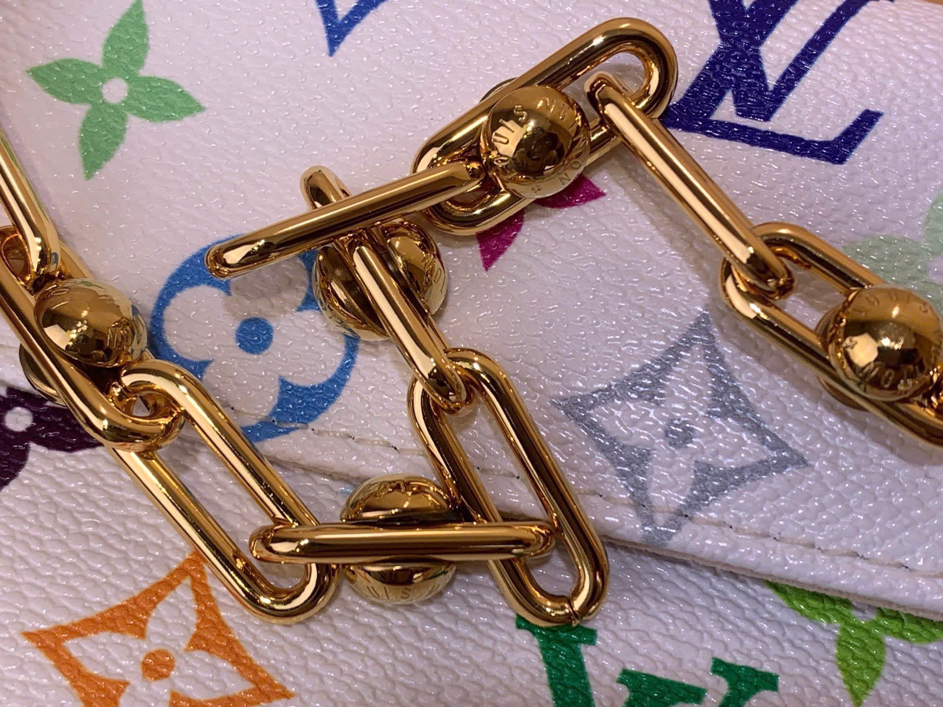 • Thuộc BST Monogram, lấy cảm hứng từ Sac Recoleta jh những năm 2000, kết hợp Monogram canvas sang trọng. • Thiết kế Wallet On Chain tiện dụng với ngăn thẻ và ngăn kéo khóa kéo, có thể đựng vừa các vật dụng cơ bản hàng ngày. • Dây xích và dây da có thể tháo rời, điều chỉnh linh hoạt, cho phép đeo vai dài, đeo chéo hoặc cầm tay. • Phiên bản siêu VIP, hoàn thiện tinh xảo, chuẩn boutique, mang đậm phong cách Louis Vuitton. • Màu sắc: Trắng họa tiết Murakami