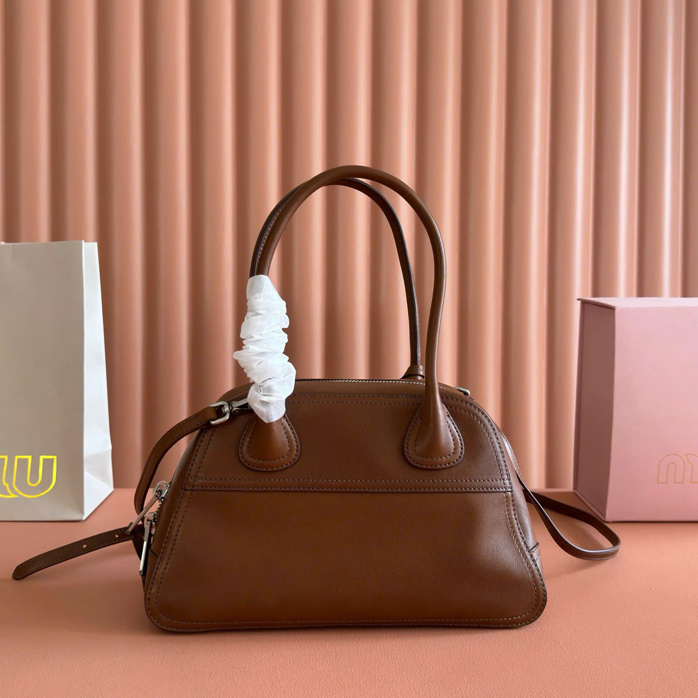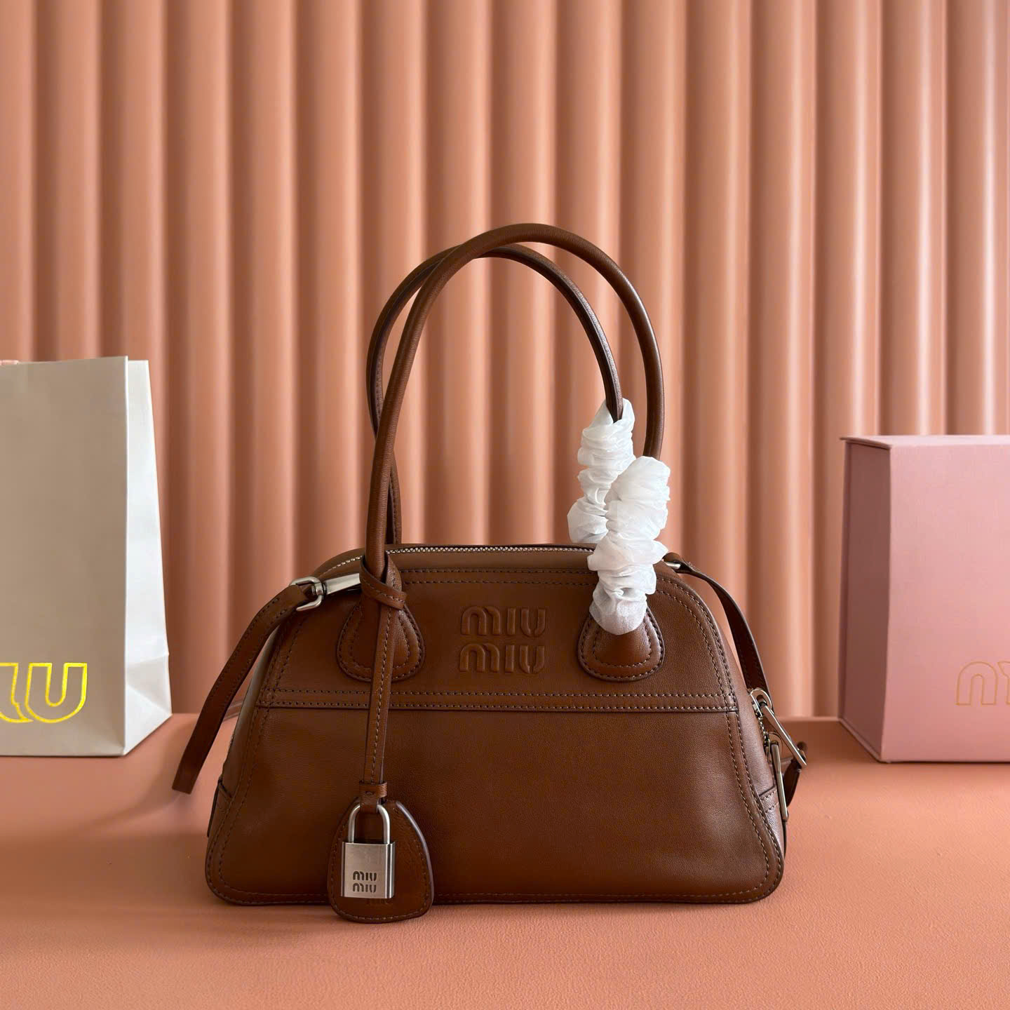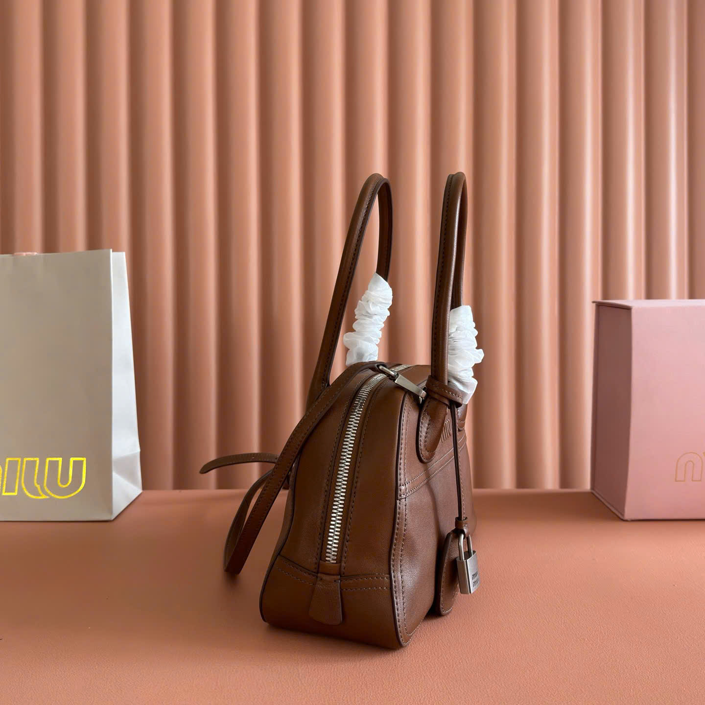 Túi xách Miu Miu Vivant Mini Suede Bowling Bag – 5BB200 – Siêu VIP - màu nâu