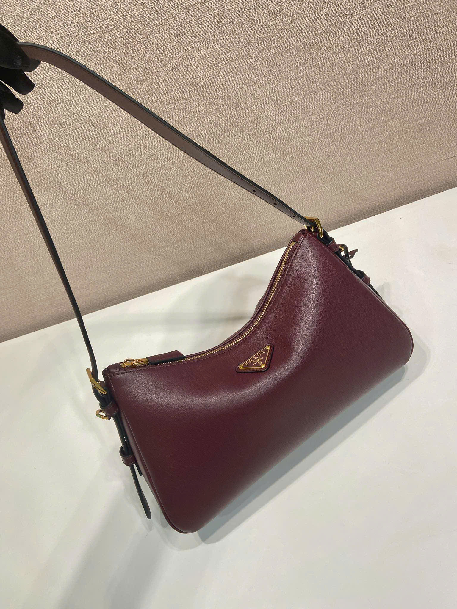 • Thiết kế Prada Aimée Hobo kẹp nách phong cách tối giản, sang trọng và hiện đại. • Chất liệu da bê nhập khẩu cao cấp, mềm mại và bền đẹp. • Logo tam giác Prada tráng men kim loại đặc trưng ở mặt trước. • Dây đeo da có thể tháo rời, linh hoạt khi sử dụng. • Dáng túi hobo mềm mại, đeo vai thoải mái và thời trang. • Ngăn túi rộng rãi, có thể đựng điện thoại, ví, mỹ phẩm và vật dụng cá nhân hằng ngày. • Phong cách thanh lịch, dễ phối đồ, phù hợp đi làm, đi chơi hoặc dạo phố. • Mẫu túi hot trend được nhiều tín đồ thời trang yêu thích