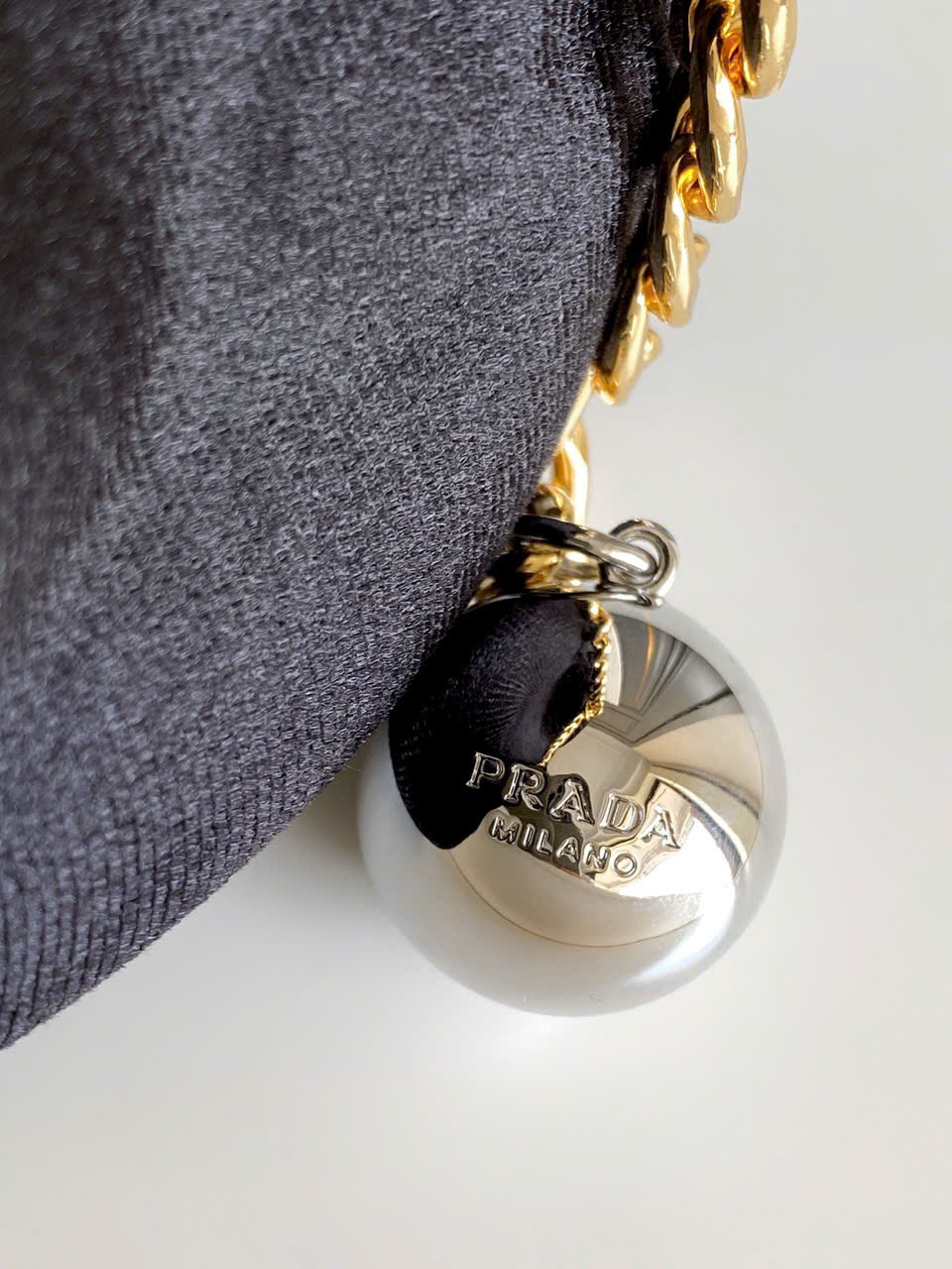 • Dây xích trang trí cùng mặt dây hình cầu, tăng nét độc đáo cho túi.