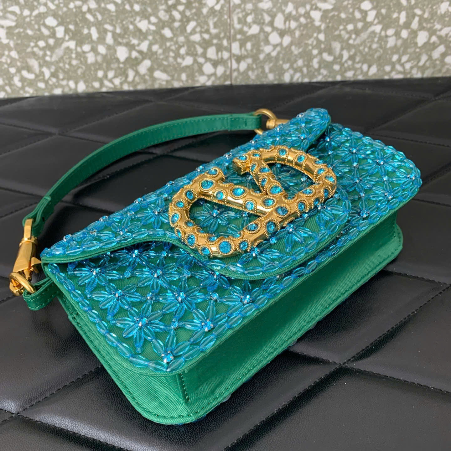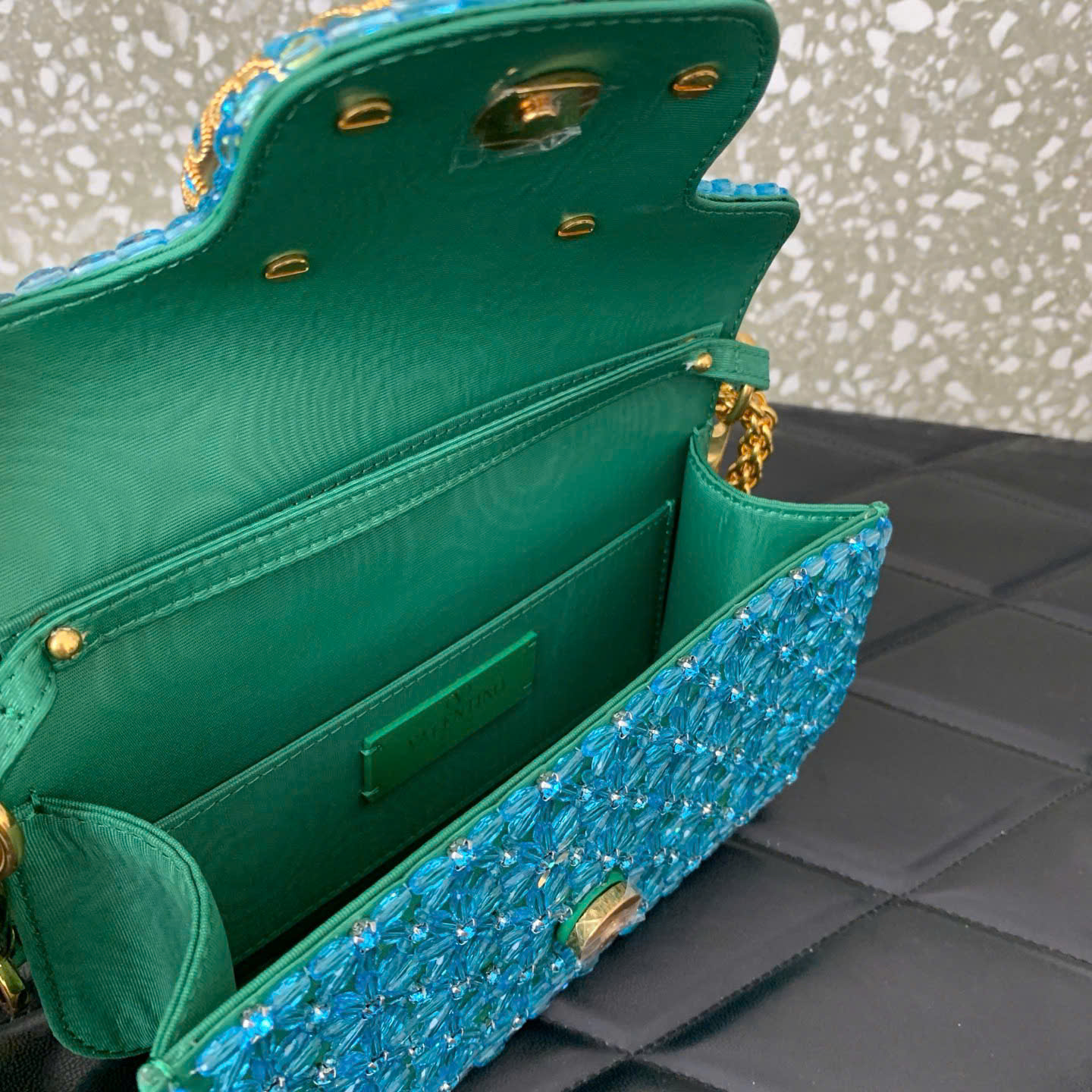 • Thiết kế Valentino VLogo Loco Bag sang trọng và nổi bật. • Trang trí pha lê Swarovski mô phỏng, tạo hiệu ứng lấp lánh cao cấp. • Logo VLogo Signature đặc trưng với khóa nam châm tiện lợi. • Phụ kiện kim loại tông palladium, sáng bóng và bền đẹp. • Tay cầm da có thể tháo rời, linh hoạt khi sử dụng. • Dây xích trượt có thể tháo rời, dễ dàng điều chỉnh độ dài. • Có thể đeo vai, đeo chéo hoặc cầm tay tùy phong cách. • Form túi nhỏ gọn, thanh lịch và rất thời trang. • Phù hợp đi tiệc, đi chơi hoặc dạo phố. • Dung tích đủ đựng điện thoại, son môi và vật dụng cá nhân nhỏ. • Phiên bản Siêu VIP, hoàn thiện chi tiết sắc nét và cao cấp. • Sản phẩm kèm hộp và phụ kiện đầy đủ