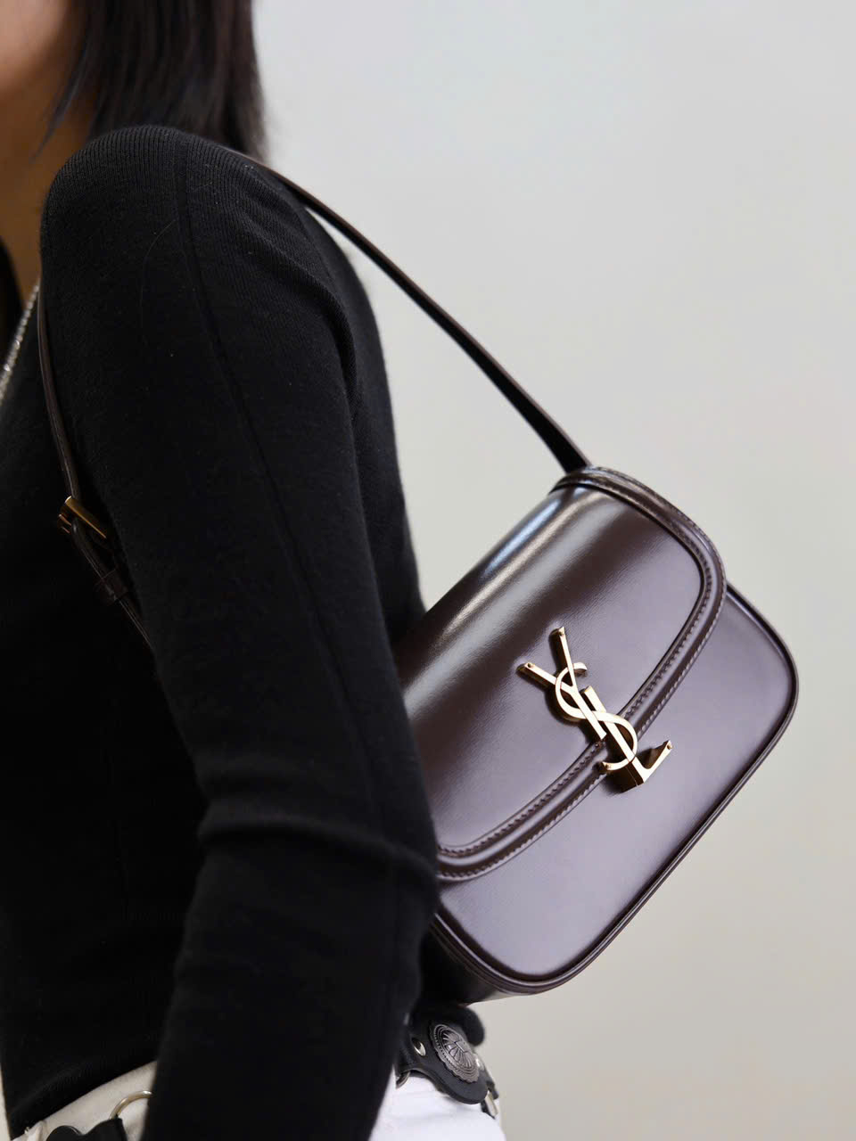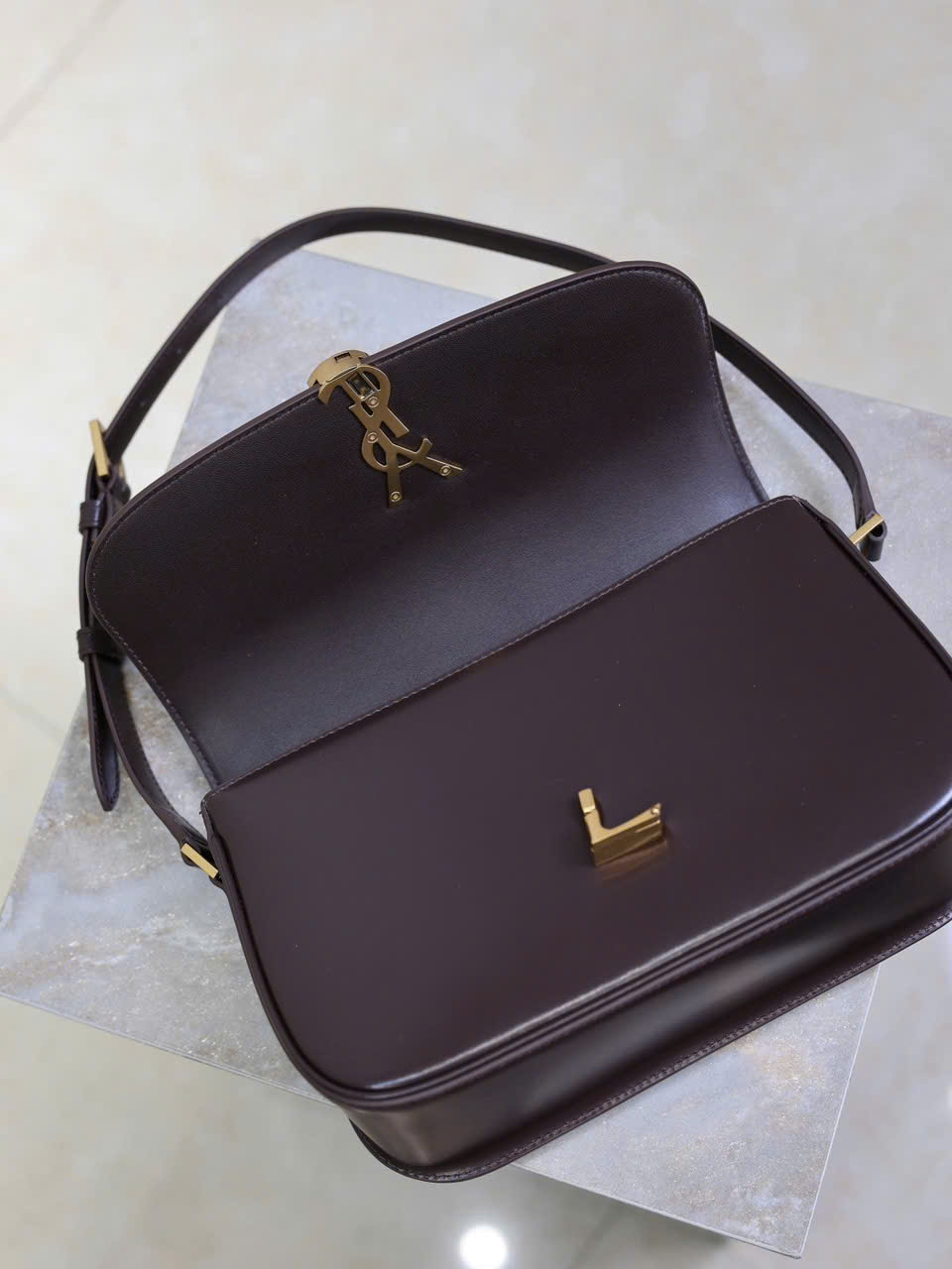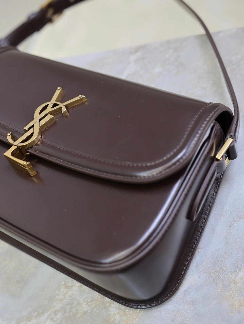 Túi xách YSL SOLFERINO BOX siêu vip – Màu cà phê khoá vàng – Size 24cm