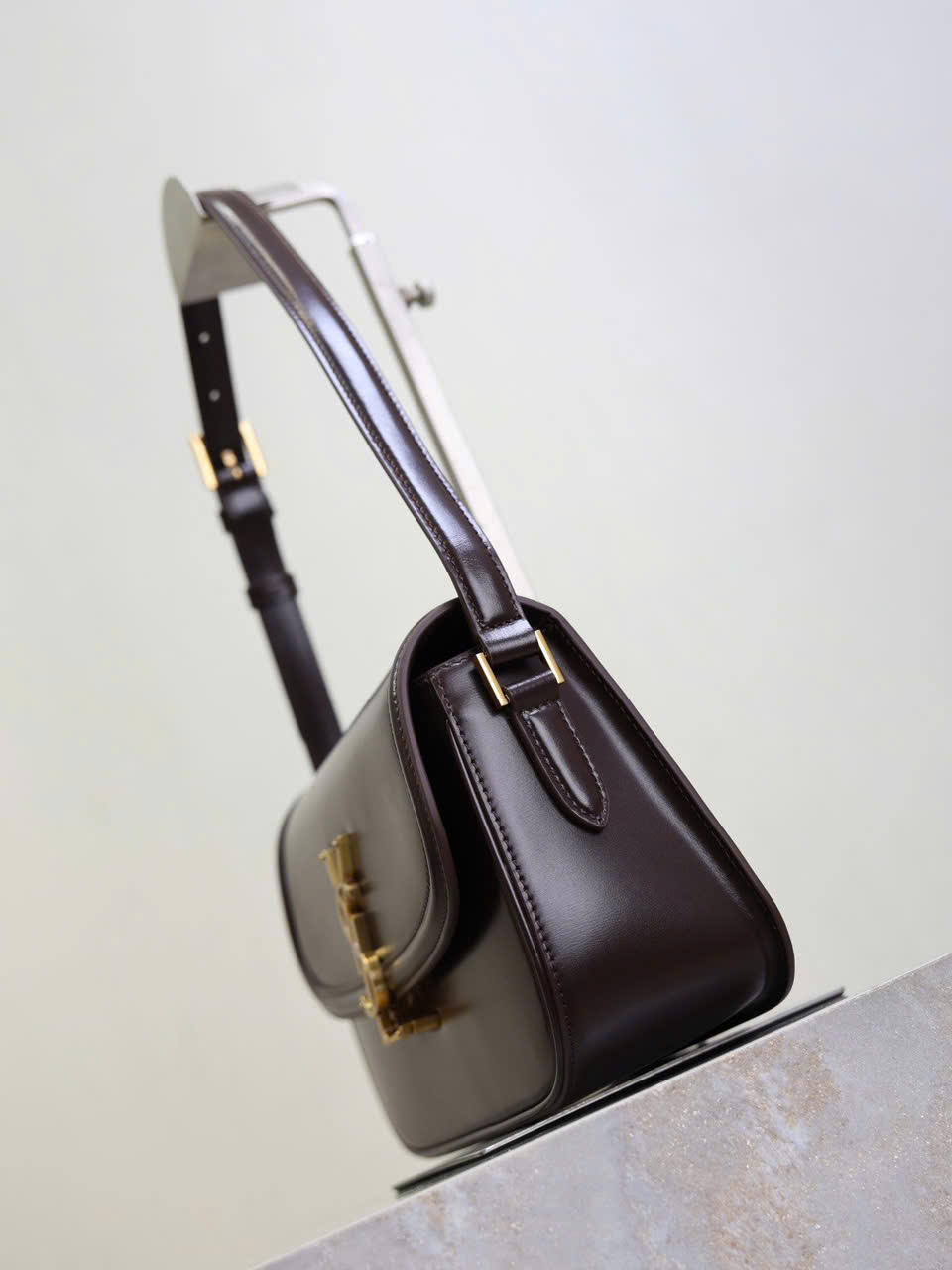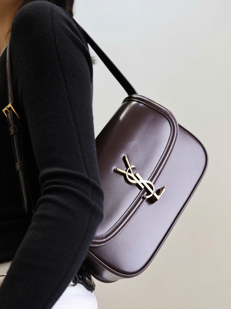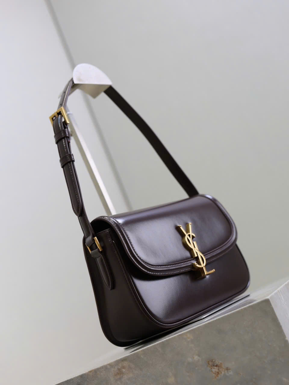 Túi xách YSL SOLFERINO BOX siêu vip – Màu cà phê khoá vàng – Size 24cm