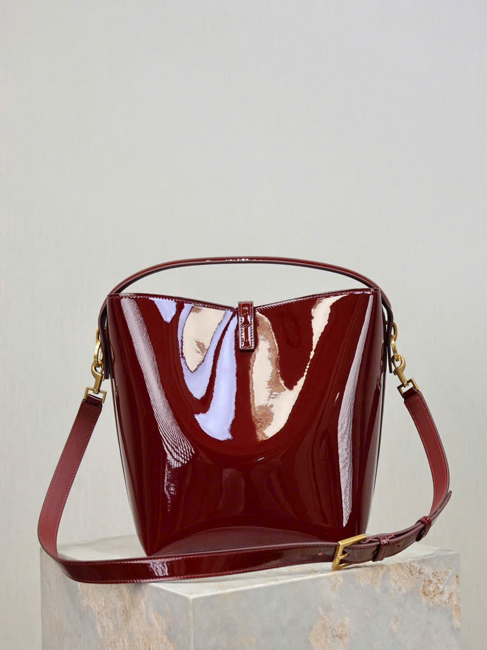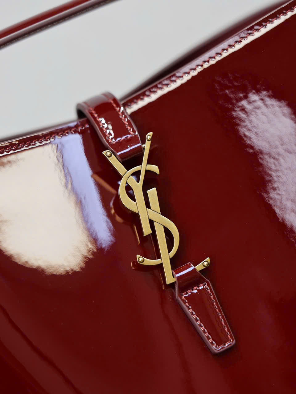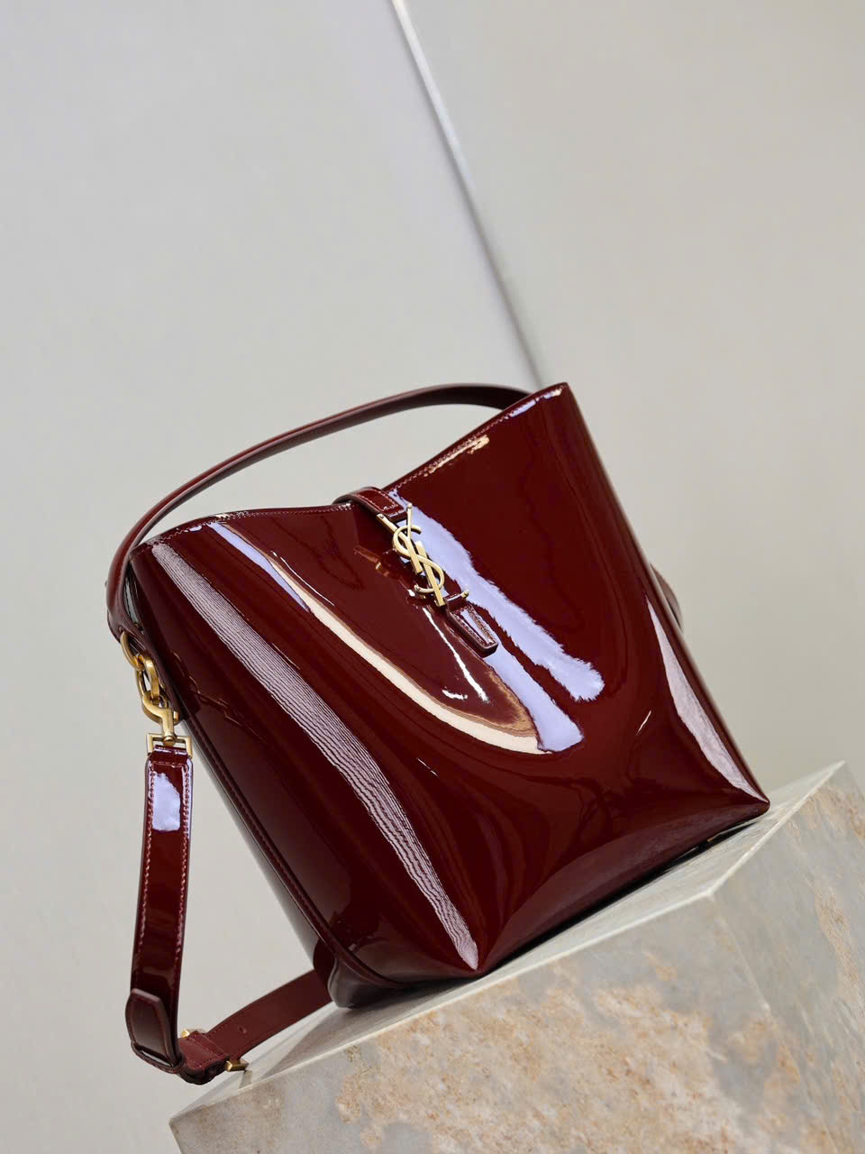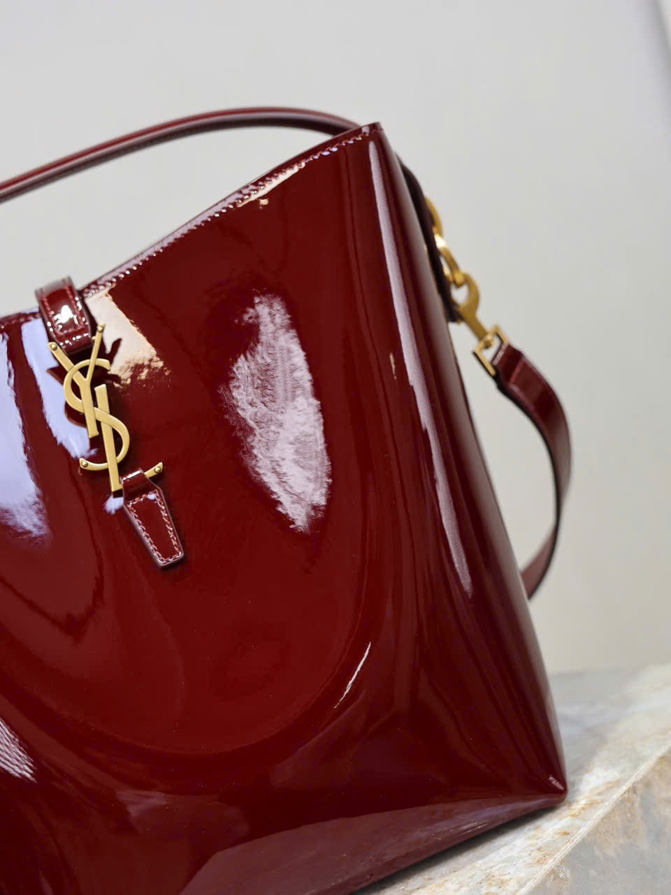 - Tên Sản Phẩm: Túi Xách Yves Saint Laurent siêu cấp LE 5 À 7 Bucket Da Bóng Màu Đỏ Mận – Mã 742828