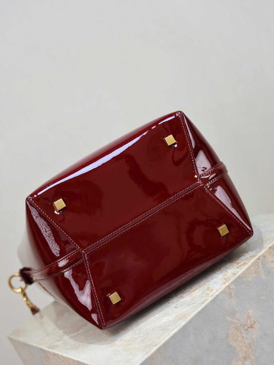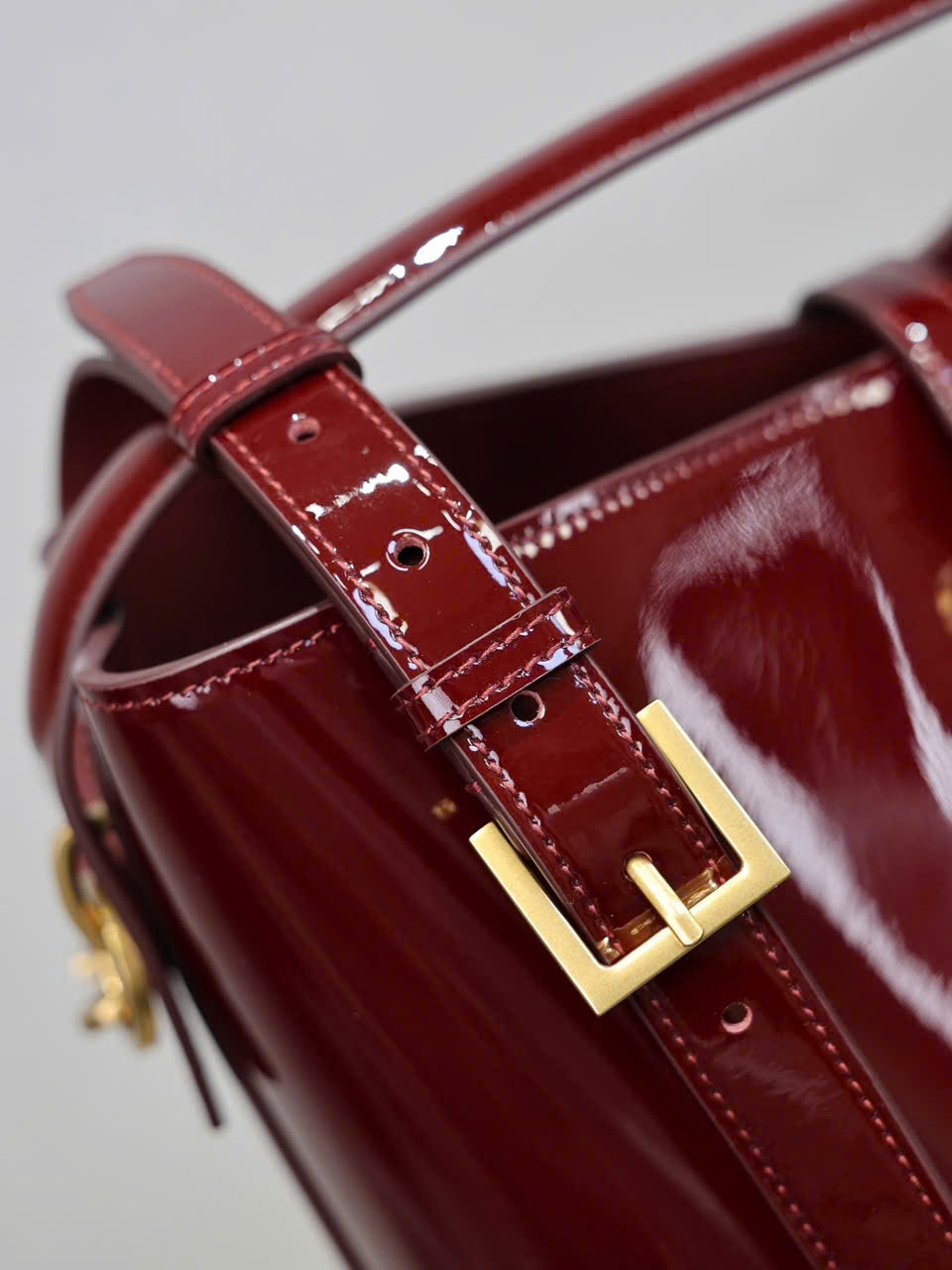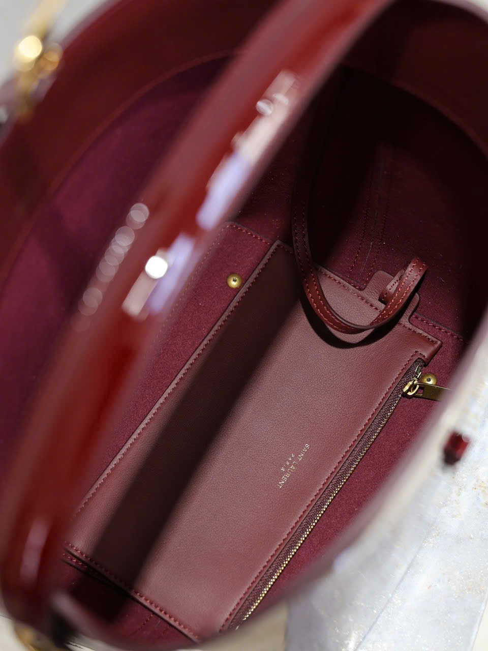 Túi Xách Yves Saint Laurent siêu cấp LE 5 À 7 Bucket Da Bóng Màu Đỏ Mận