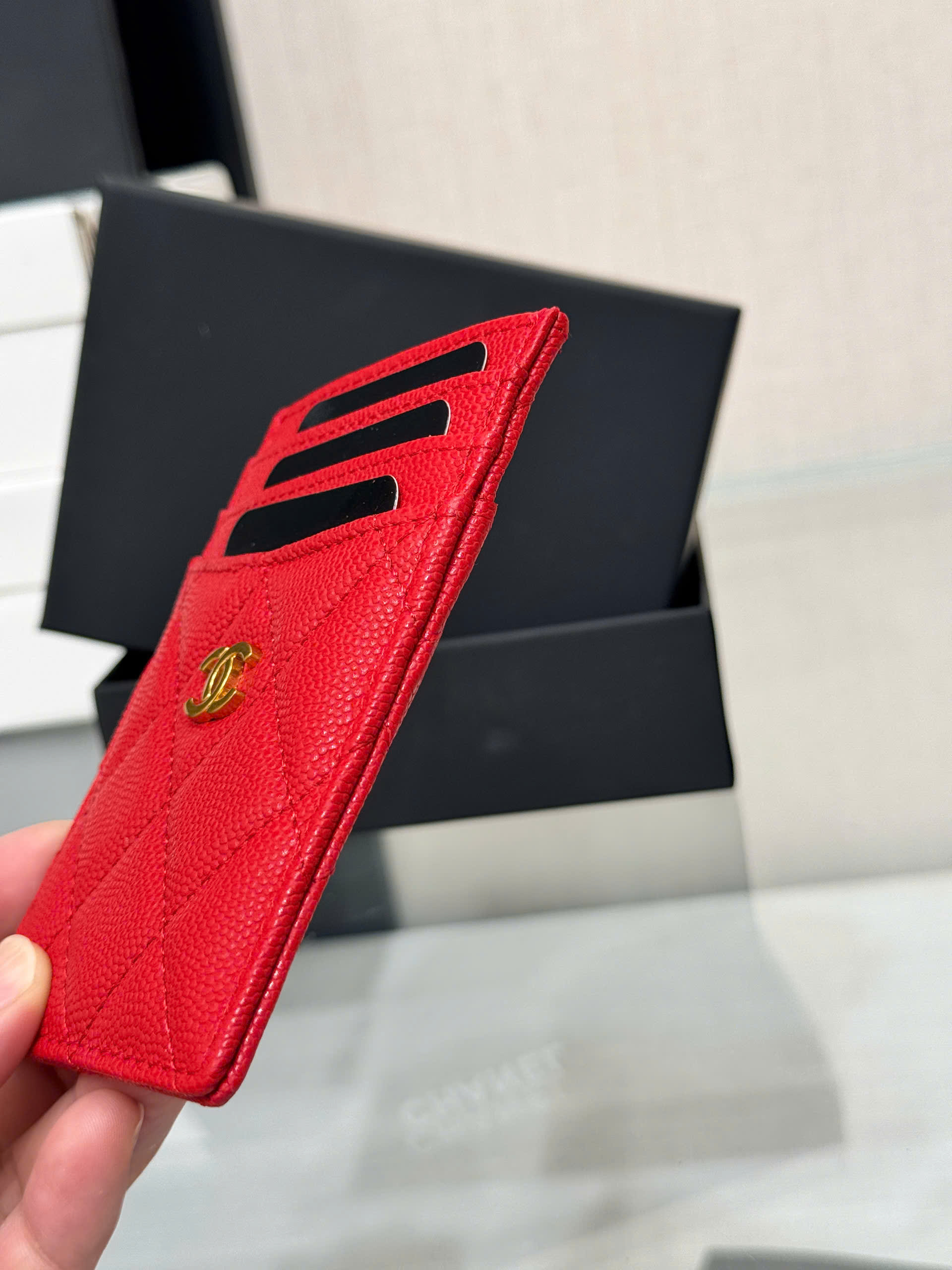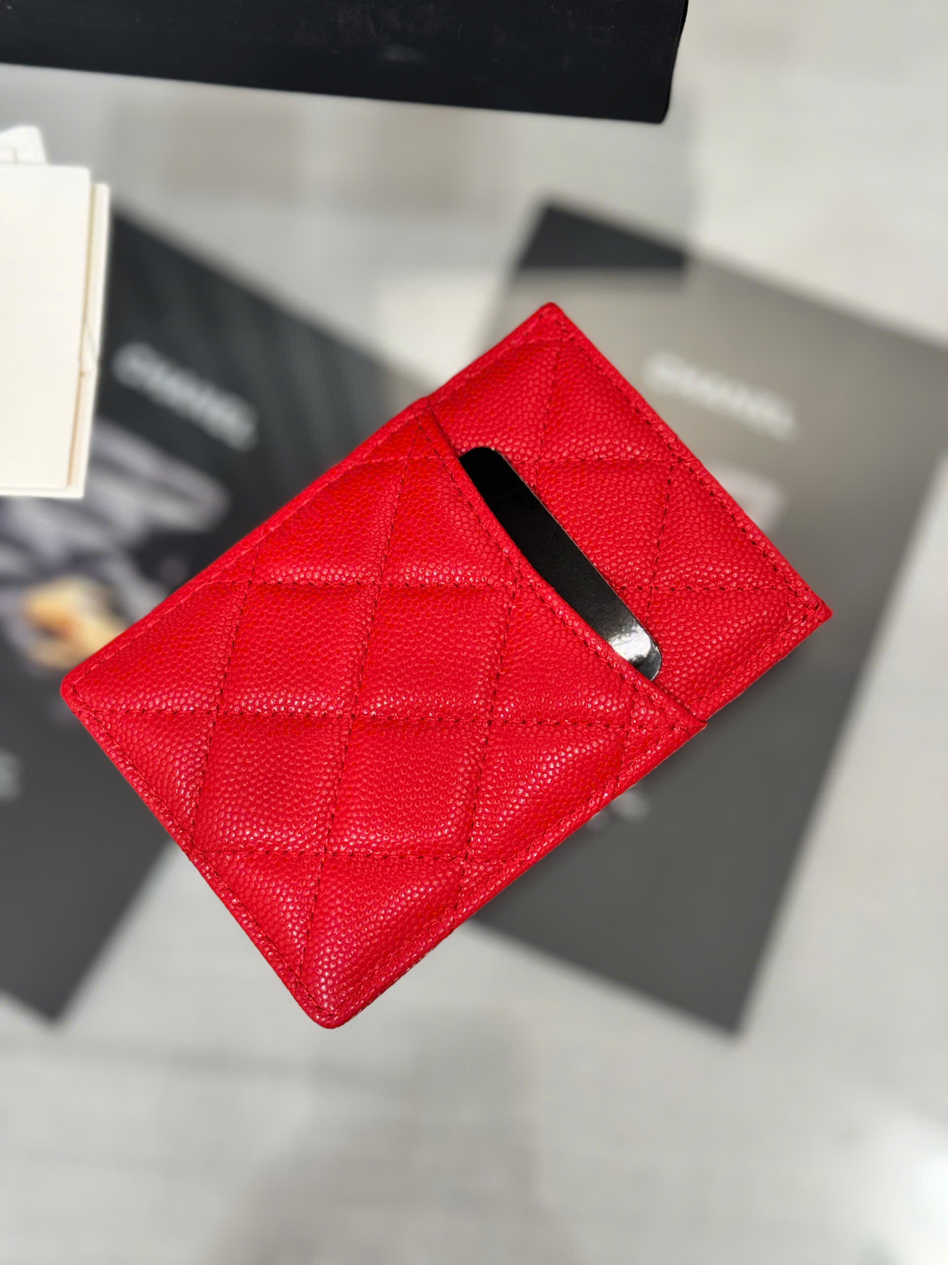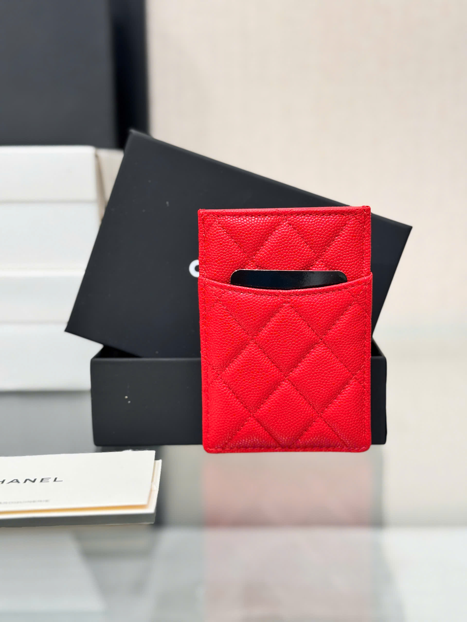 • Mẫu card holder Chanel 25S mới nhất, thiết kế hiện đại và tinh tế. • Dung tích đựng thẻ nâng cấp, tiện lợi hơn so với bản cổ điển. • Thiết kế 3 khe thẻ phía trước + 3 khe thẻ phía sau + 1 ngăn giữa. • Có thể đựng nhiều thẻ ngân hàng, thẻ ID và tiền mặt gấp gọn. • Kiểu dáng mỏng nhẹ, dễ dàng mang theo trong túi xách hoặc túi áo. • Chi tiết hoàn thiện tinh xảo, phong cách sang trọng đặc trưng. • Phù hợp sử dụng hằng ngày hoặc làm quà tặng cao cấ