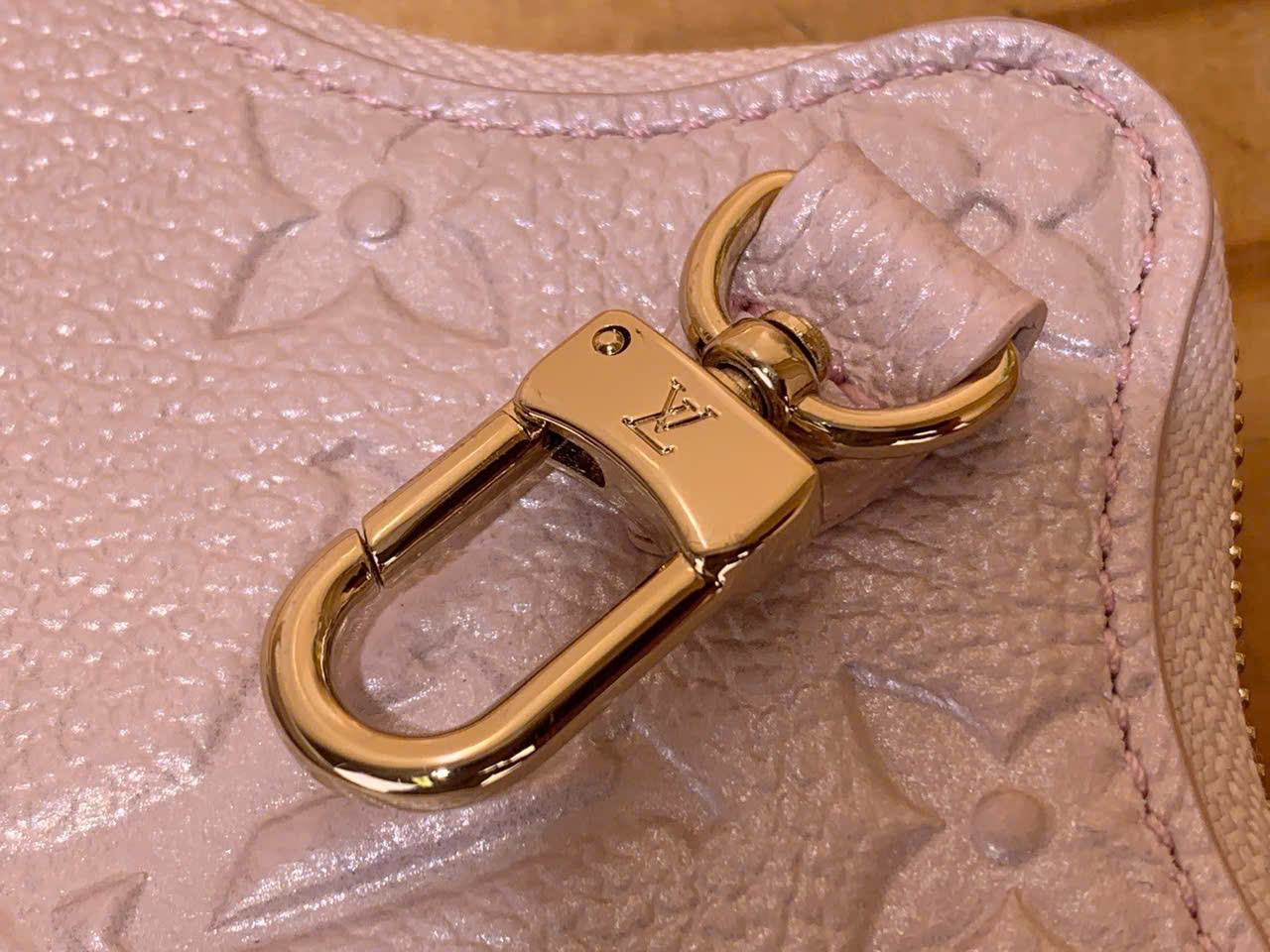 - Chất liệu da Empreinte dập nổi mềm mịn, phủ màu hồng ánh trai thời thượng