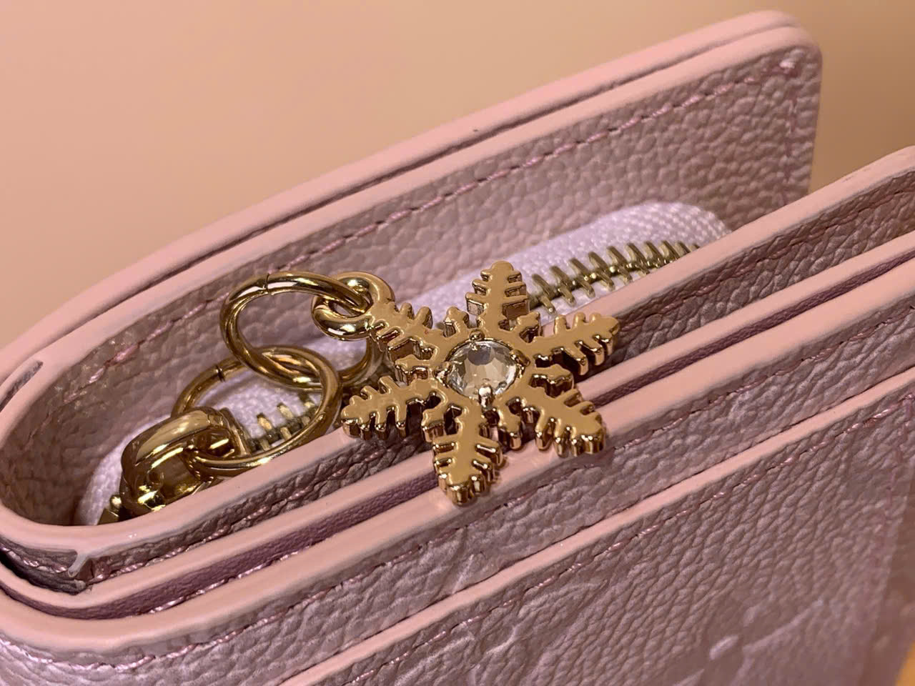 • Mẫu LOU (Claire) Wallet được làm mới trong mùa này với tông hồng ánh trai (snow pearl) tinh tế