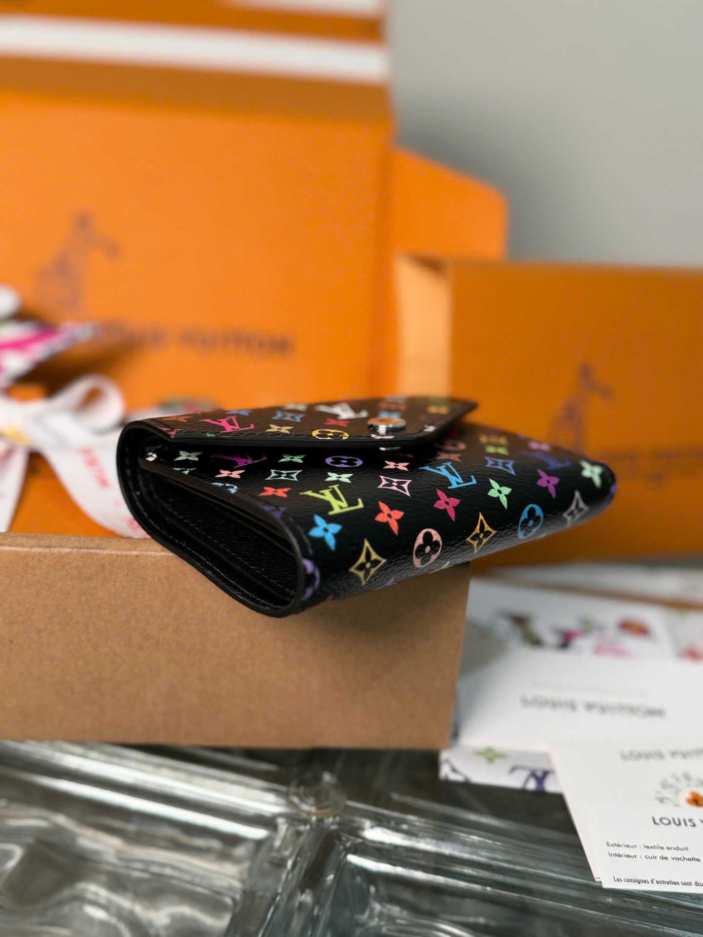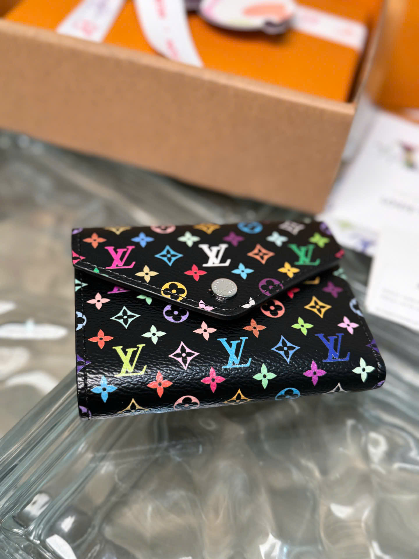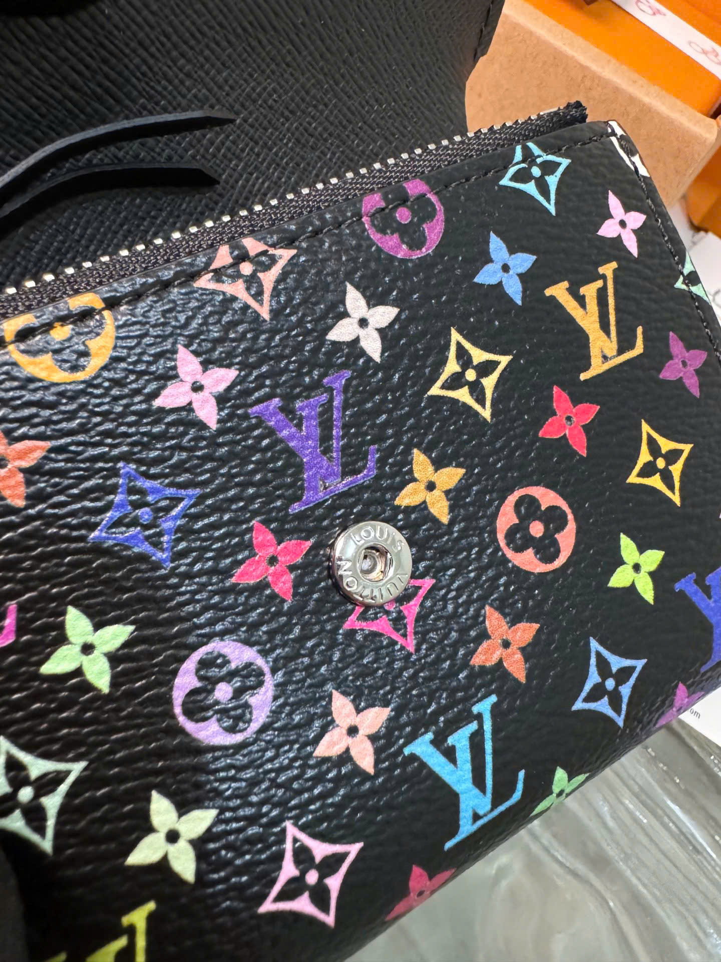 • Thiết kế Louis Vuitton Victorine Wallet nhỏ gọn, thanh lịch và tiện dụng. • Thuộc bộ sưu tập Louis Vuitton x Takashi Murakami với họa tiết Monogram cầu vồng nổi bật. • Chất liệu canvas Monogram phủ cao cấp, kết hợp lót da bò bên trong sang trọng. • Ngăn khóa kéo đựng tiền xu tiện lợi. • Ngăn đựng tiền giấy và nhiều khe cắm thẻ, giúp sắp xếp vật dụng gọn gàng. • Phụ kiện kim loại màu bạc tạo điểm nhấn tinh tế. • Form ví nhỏ gọn nhưng sức chứa hợp lý, phù hợp mang theo hằng ngày. • Chip thép toàn phần 163C01, phiên bản cao cấp Like Auth. • Sản phẩm kèm hộp và phụ kiện đầy đủ